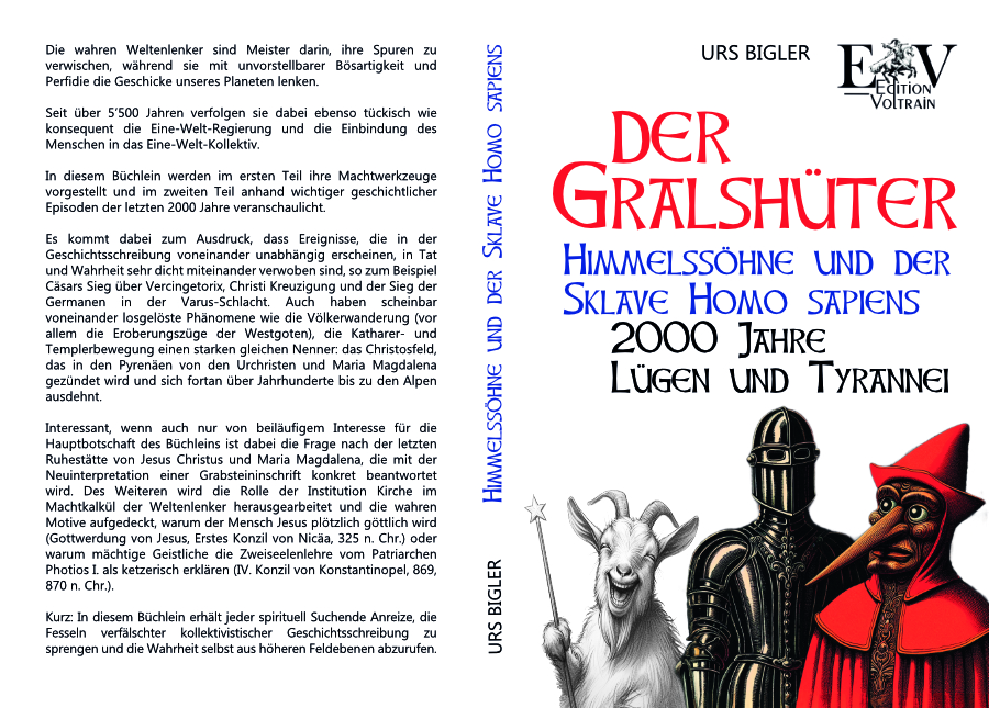 Antworten auf solche und andere Fragen finden sich im Buch „Der Gralshüter – Himmelssöhne und der Sklave Homo sapiens“.